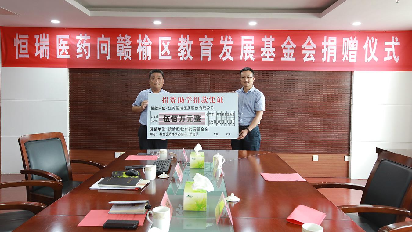 2020年6月,世界杯下单平台网站官网向赣榆区教育发展基金会捐赠500万元,用于赣榆区黑林镇大赤涧小学教育教学设施建设