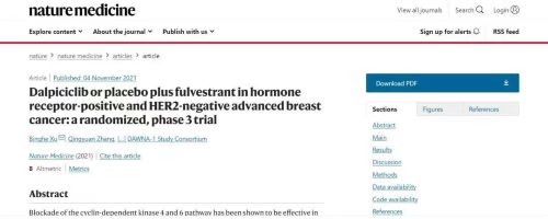 近日,世界杯下单平台网站官网自主研发创新药达尔西利(Dalpiciclib,CDK4/6抑制剂)联合氟维司群治疗激素受体阳性HER2阴性晚期乳腺癌的3期临床研究(DAWNA-1)在国际顶级权威杂志《自然医学》(Nature Medicine,2021年影响因子:53.44)全文在线发表。这是继三种CDK4/6抑制剂的PALOMA、MONARCH、MONALEESA系列乳腺癌领域3期研究陆续发表于NEJM、Lancet Oncology、JCO等期刊后,又一新型分子结构的CDK4/6抑制剂(也是国内原研的首个CDK4/6抑制剂)的3期临床研究数据,再次登上顶尖医学期刊。