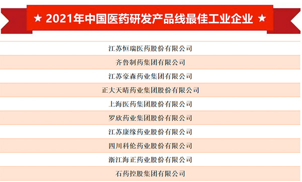 大会还同期发布了2021年“中国医药研发产品线最佳工业企业”、“中国医药工业最具投资价值企业(非上市)”、“中国医药工业最具成长力企业”、“中国医药新锐创新力量”等榜单。在2021年“中国医药研发产品线最佳工业企业”榜单中,世界杯下单平台网站官网以行业领先的综合研发实力稳居榜首。
