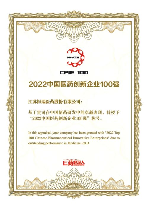 近日,知名医药行业媒体《E药经理人》发布2022“中国医药创新企业100强”榜单,世界杯下单平台网站官网以卓越的创新研发实力连续第四年上榜并位列第一梯级。同时,在《E药经理人》首次评选的“中国医药创新升级榜样50”榜单中,公司也位列第二。