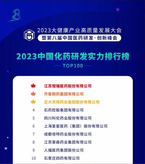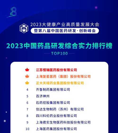 由药智网、中国药业杂志社主办的2023大健康产业高质量发展大会暨第八届中国医药研发•创新峰会于6月16日开幕,会上发布了《2023中国药品研发实力排行榜》系列榜单,世界杯下单平台网站官网凭借深厚的创新研发实力再创辉煌:荣登《2023中国药品研发综合实力排行榜TOP100》榜首、《2023中国化药研发实力排行榜TOP100》榜首。值得一提的是,今年是世界杯下单平台网站官网连续第6年入选《中国药品研发综合实力排行榜》榜首。