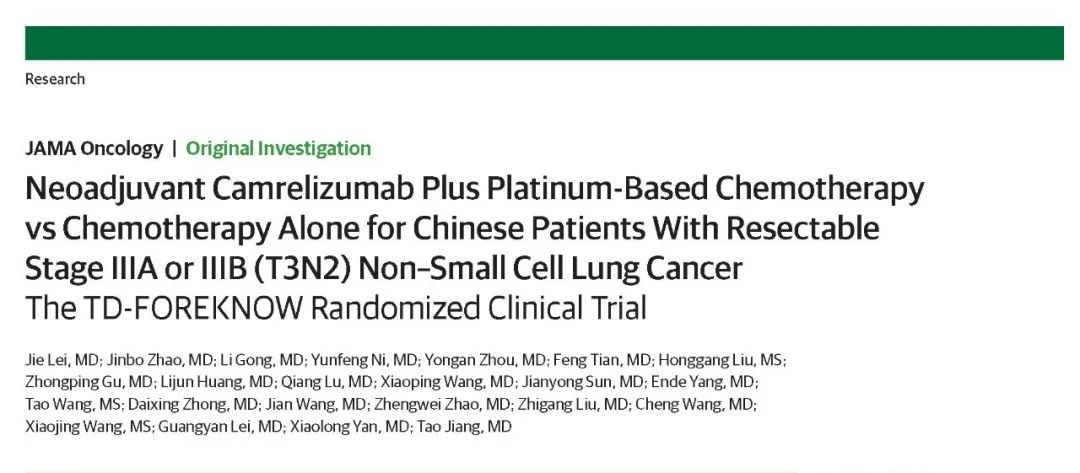 卡瑞利珠单抗TD-FOREKNOW研究在线发表于JAMA Oncology