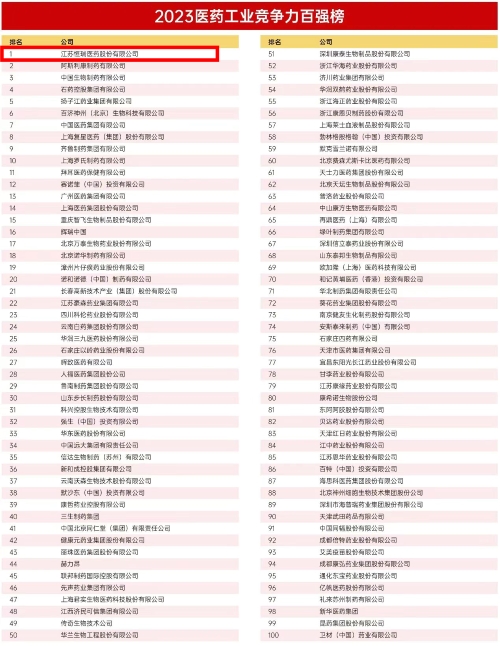 2023医药工业竞争力百强榜发布,世界杯下单平台网站官网位列榜首