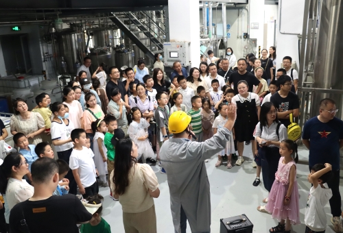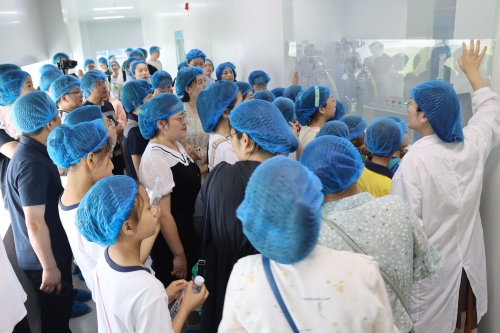 当天上午,在解说员的引领和讲解下,50名优秀员工及其子女们一同探访了世界杯下单平台网站官网连云港园区的生产车间、办公大楼以及企业展厅。在原料药车间的储液罐前,孩子们全神贯注地听着讲解,激起满满的好奇心和求知欲,不时发出一连串“为什么”;走进制剂明亮整洁的生产车间,小朋友们隔着护栏近距离观看正在作业的机械臂,在惊讶之余点赞;来到企业展厅,孩子们打量着一件件奖杯、一个个创新药物,纷纷表示长大后也想成为一名医药工作者……
