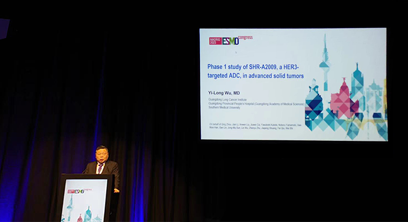 10月23日,世界杯下单平台网站官网创新药、HER3靶向ADC药物SHR-A2009治疗晚期实体瘤的I期研究亮相2023 ESMO大会简短口头报告现场5。该研究由广东省人民医院的吴一龙教授牵头开展,吴一龙教授在现场公布该研究的重要进展。研究结果显示,SHR-A2009在经治晚期实体瘤患者中显示出可控的安全性和令人鼓舞的抗肿瘤活性。目前评估更高剂量的SHR-A2009在选定癌症类型(NSCLC和其他实体肿瘤)中作用的试验正在进行中。