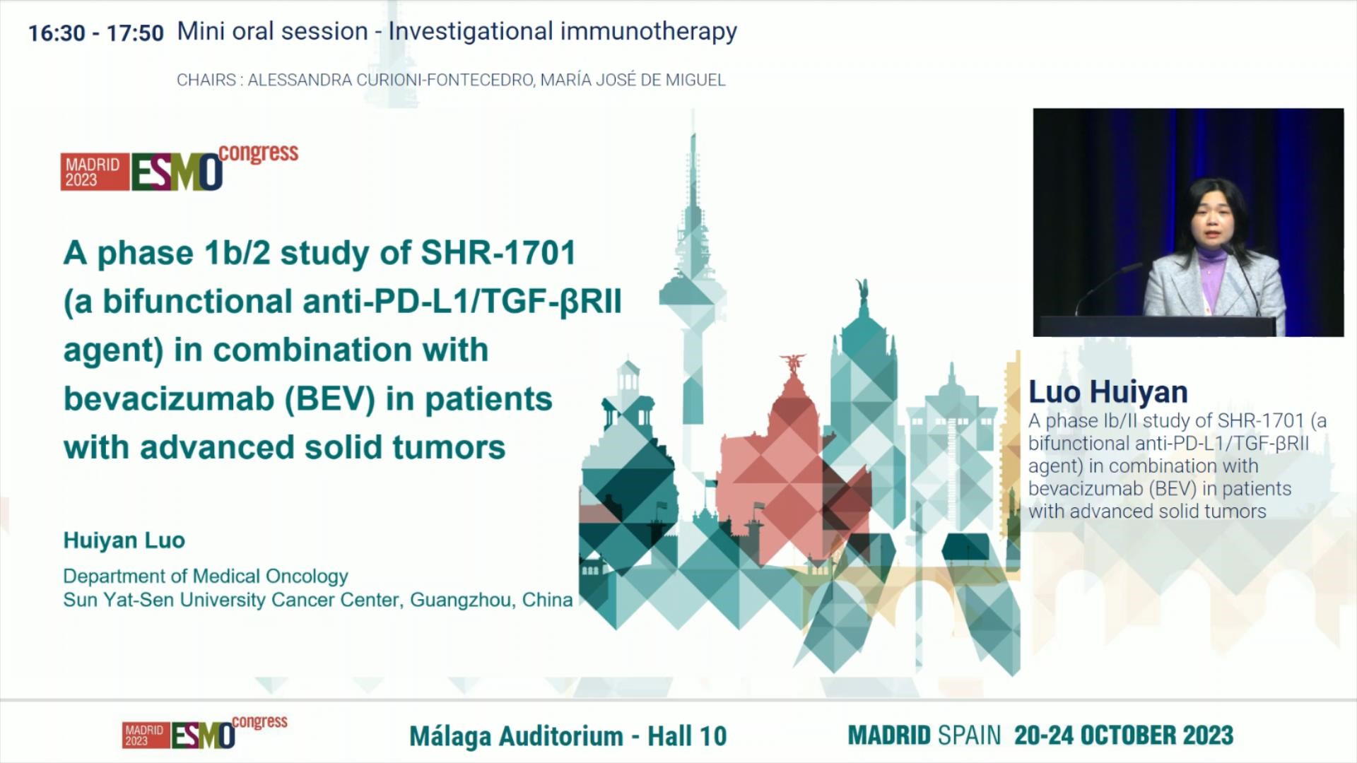 10月21日,世界杯下单平台网站官网创新药SHR-1701联合贝伐珠单抗(BEV)治疗晚期实体瘤患者的1b/2期研究亮相2023 ESMO大会简短口头报告现场6。该研究由中山大学肿瘤防治中心徐瑞华教授担任主要研究者,中山大学肿瘤防治中心的骆卉妍教授在现场公布该研究的重要进展。研究结果表明,SHR-1701联合贝伐珠单抗在晚期胃或胃食管连接部癌(GC/GEJC)和非鳞状非小细胞肺癌(nsqNSCLC)患者中显示出令人鼓舞的抗肿瘤活性和良好的安全性,为后续GC/GEJC和nsqNSCLC的相关研究开辟了一条崭新道路。
