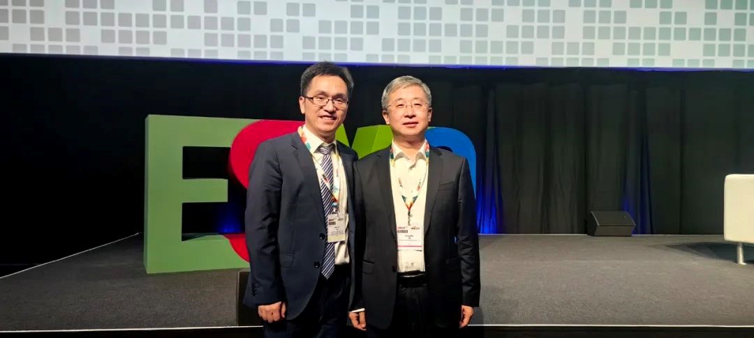 2023 ESMO现场图:世界杯下单平台网站官网总经理戴洪斌与林振宇教授合影留念