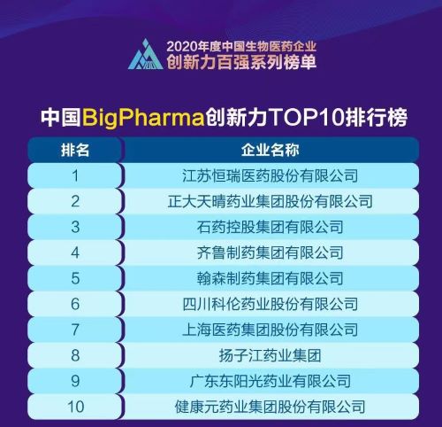 世界杯下单平台网站官网登顶“中国BigPharma企业创新力TOP10排行榜”