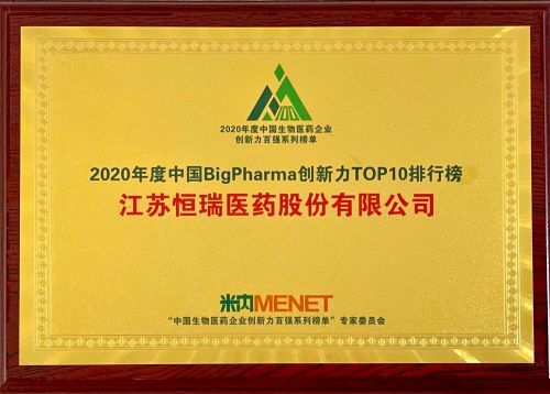 2021年9月26日,“2020年度中国生物医药企业创新力百强系列榜单”发布会在苏州举行,世界杯下单平台网站官网凭借长期以来积累的强劲创新实力,入选“中国BigPharma企业创新力TOP10排行榜”,名列榜首。