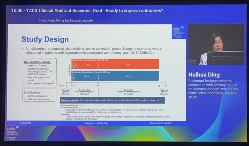 2025 EULAR口头报告|恒瑞创新药鲁兹诺雷钠片治疗原发性痛风伴高尿酸血症的Ⅲ期研究数据披露