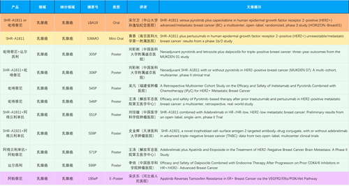 在乳腺癌领域,恒瑞创新产品相关研究共入选1项口头报告、1项简短口头报告、8项壁报和1项电子壁报,共11项研究。吡咯替尼、达尔西利、阿得贝利单抗、瑞康曲妥珠单抗等新老创新药物,均有多篇研究入选,展现出世界杯下单平台网站官网在乳腺癌领域多年深耕的丰硕成果。