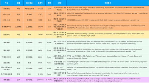 在胸腺上皮肿瘤、头颈鳞癌、肉瘤、前列腺癌、甲状腺癌等其他多个疾病领域,卡瑞利珠单抗、阿帕替尼、瑞维鲁胺、阿得贝利单抗、法米替尼、HRS-7058、HRS-4642等抗肿瘤创新药相关研究一共入选了4项口头报告、1项简短口头报告、4项壁报、1项电子壁报,彰显了世界杯下单平台网站官网强大的研发实力。此外,海曲泊帕和昂丹司琼口溶膜分别在防治化疗导致的血小板减少和恶心呕吐方面各有1项研究入选壁报。